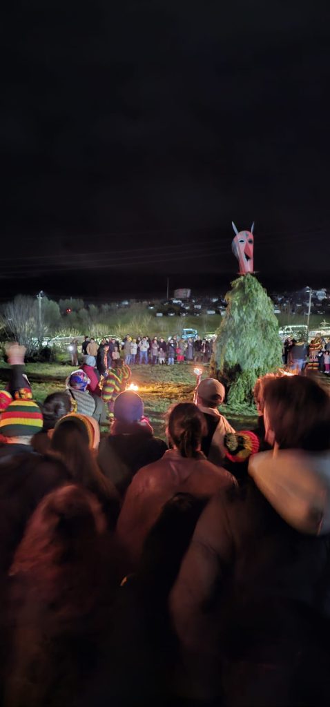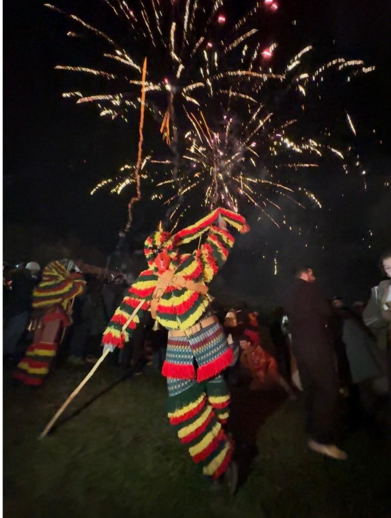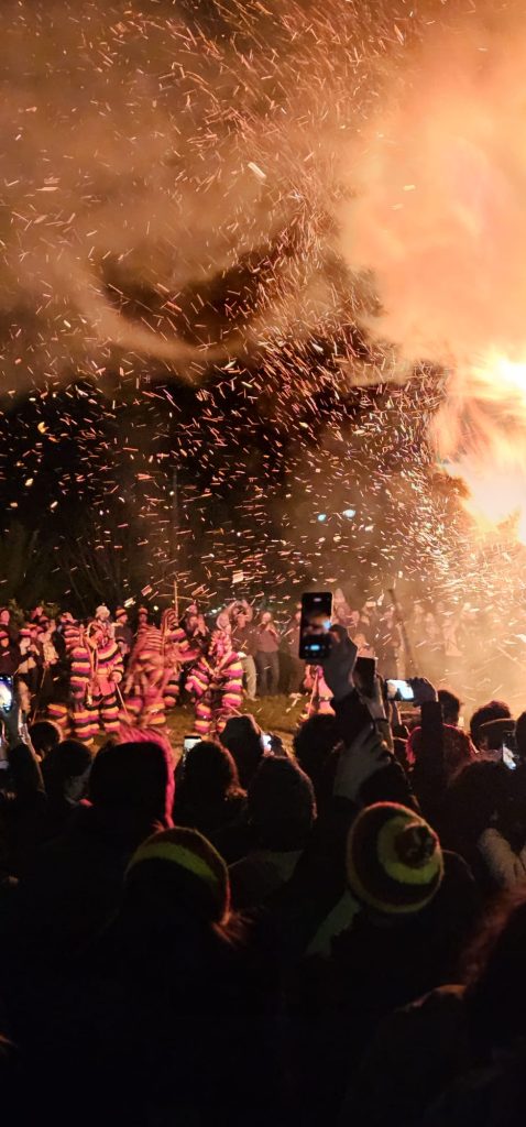 Allí, los disfraces construidos con elementos del campo —musgo, hojas, piñas, ramas y fibras vegetales— refuerzan esa conexión directa con el paisaje.